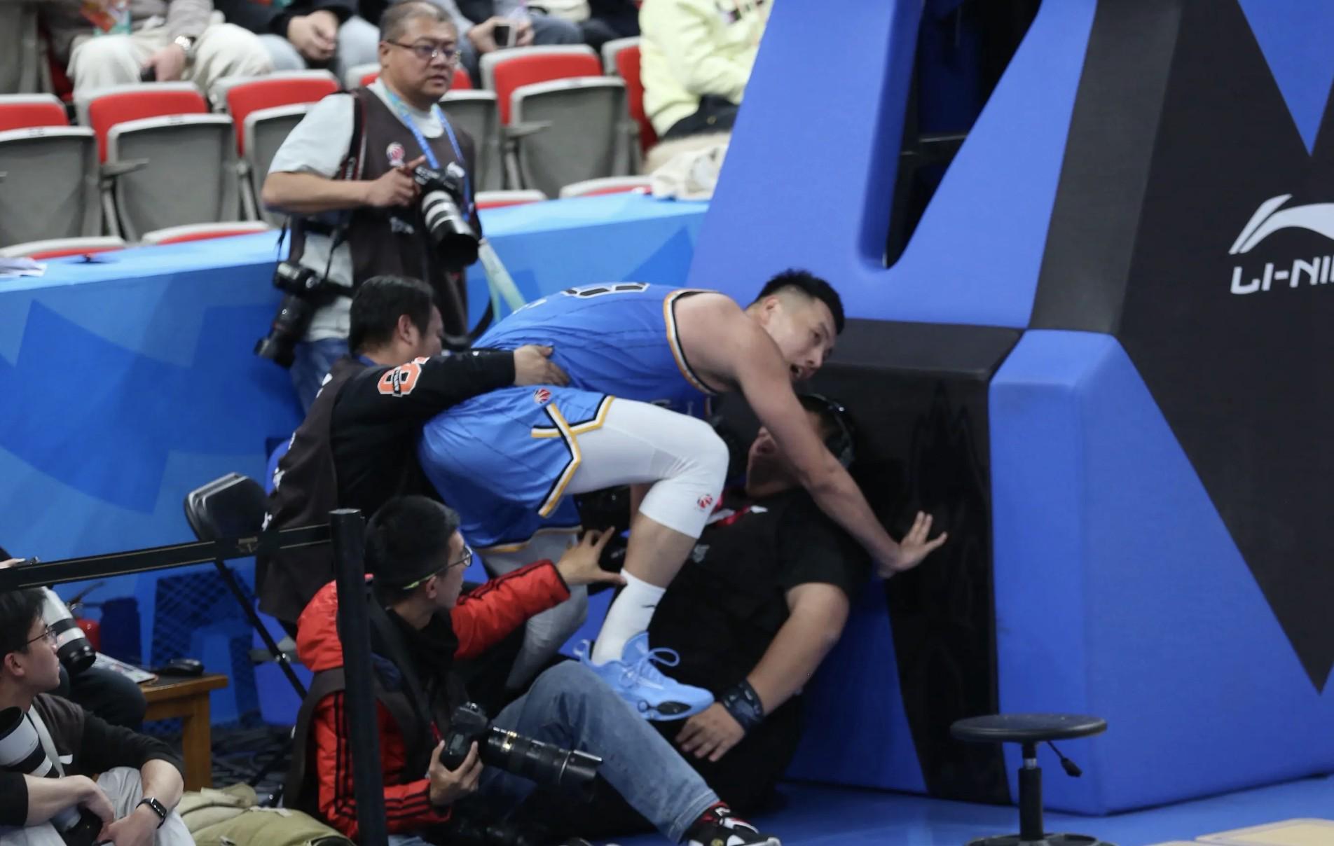 在與廣東的比賽中,翟曉川在一次進(jìn)攻時沖出場地,與場邊的攝像師相撞,翟曉川想將攝像師扶起來,但試了兩次均以失敗告終。據(jù)了解,該攝像師曾是一名專業(yè)的摔跤運動員,體重超過了300斤。