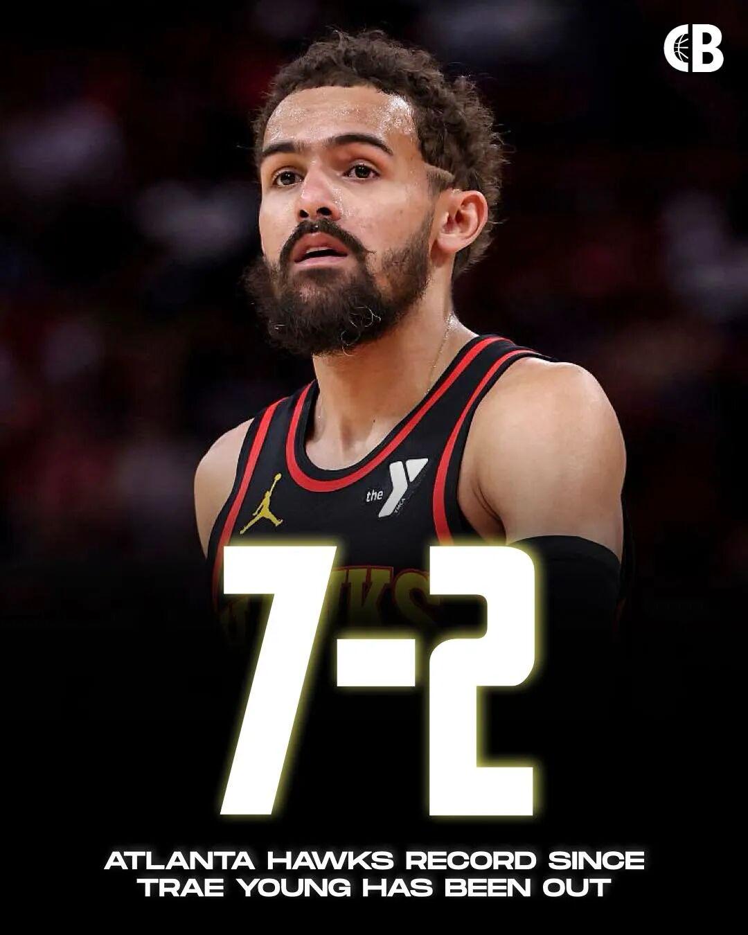 據(jù)統(tǒng)計(jì),自從2019年以5號秀身份加盟老鷹以來,特雷-楊缺陣的比賽中,球隊(duì)總共打出了36勝37負(fù)的表現(xiàn),勝率為49.3%。而在他出戰(zhàn)的比賽里,戰(zhàn)績是221勝267負(fù),勝率僅為45.3%。