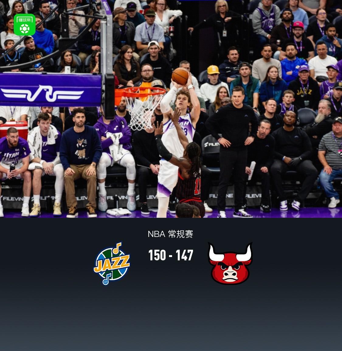 爵士雙加時(shí)150-147險(xiǎn)勝公牛,馬爾卡寧47分,喬治3分準(zhǔn)絕殺