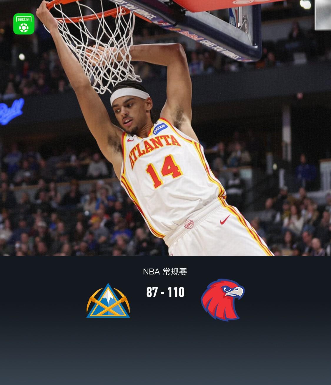 老鷹110-87大勝掘金,杰倫-約翰遜29+9+6