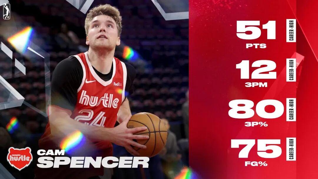 每年發(fā)展聯(lián)盟會在固定的場地進行“展示杯賽”,全聯(lián)盟的球探都會來考察,而在這三場比賽里,斯賓塞場均得到28.7分、投籃命中率60.8%,三分命中率56.3%,罰球命中率100%。還包括一場單場投進12個三分,轟下51分的神級表現(xiàn)。