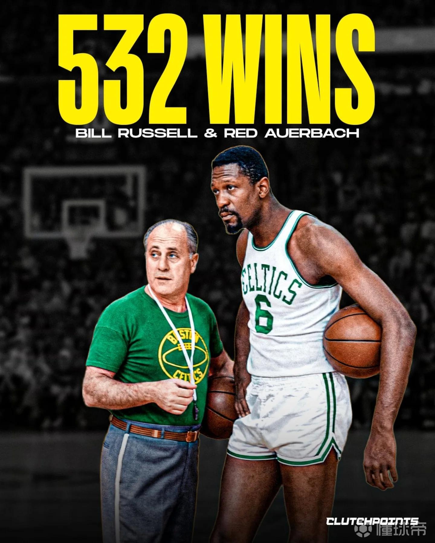 8.比爾-拉塞爾+“紅衣主教”奧爾巴赫(凱爾特人) 532場(chǎng)