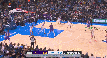 他學(xué)會(huì)了一些卡魯索愛(ài)玩的防守技巧,也能在和SGA一起上場(chǎng)的時(shí)候像杰倫-威廉姆斯一樣擔(dān)任二號(hào)持球手,甚至在一些比分膠著的回合里,SGA都會(huì)放心地把球交給米切爾來(lái)完成進(jìn)攻。