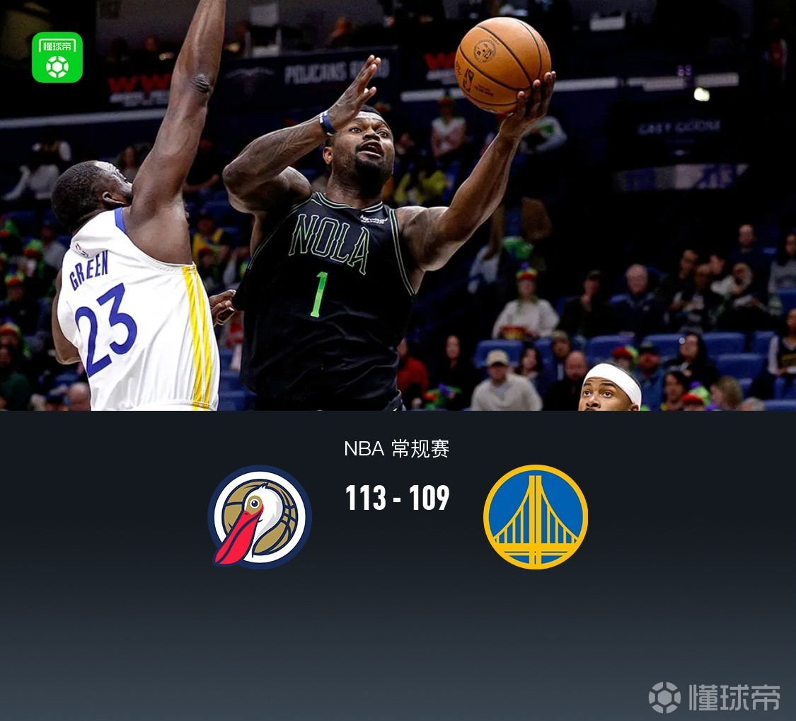 新奧爾良鵜鶘錫安-威廉森26分6板,薩迪克-貝18分6板2助;金州勇士梅爾頓28分4板3助,穆迪21分5板3助。