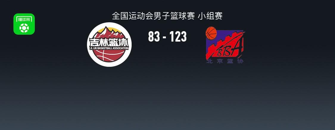 北京時間11月7日全國運動會男子籃球賽 小組賽,吉林男籃對陣北京男籃。半場吉林男籃43-61北京男籃,最終吉林男籃83-123北京男籃。吉林男籃姜偉澤18分2板3助,耿銘旸17分5板4助;北京男籃張帆24分2板4助,翟曉川19分13板4助。