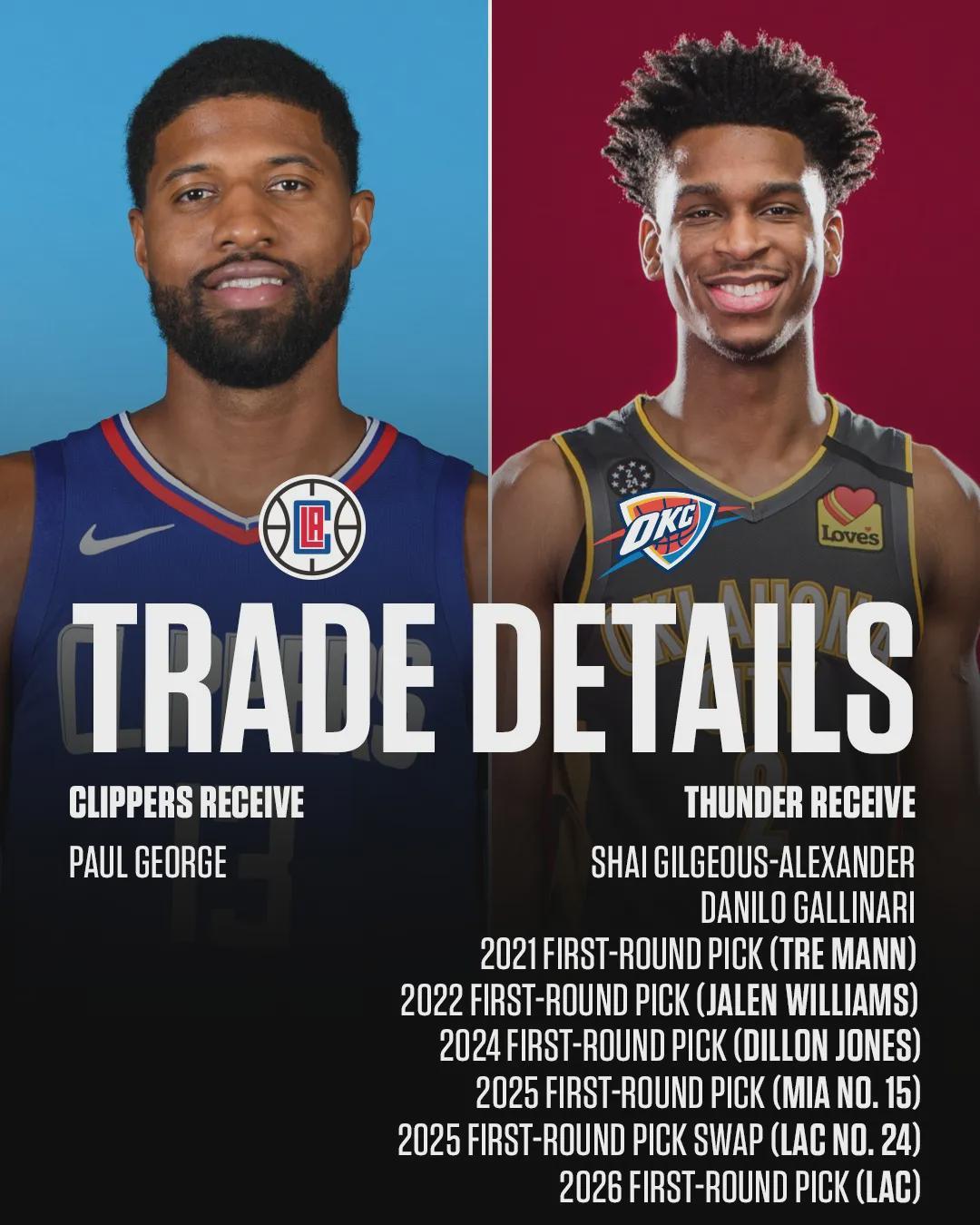 2019年夏天,為了得到保羅-喬治,快船送走5個(gè)首輪簽和2個(gè)首輪互換權(quán)。快船2026年的首輪簽在雷霆手里,2028年首輪簽在76人手里。2027年和2029年的首輪互換權(quán)也被送走。快船有意在2027年開始重建,對他們來說選秀權(quán)至關(guān)重要。