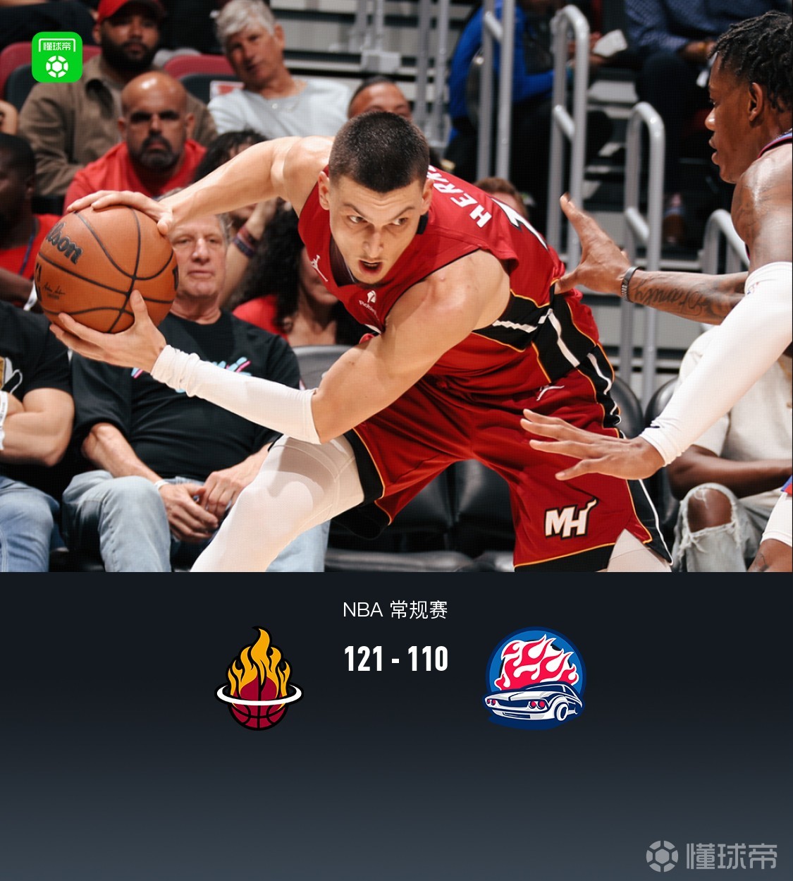 第四節(jié)熱火亞庫(kù)契奧尼斯拿下7分,活塞保羅-里德拿下10分,最終熱火121-110戰(zhàn)勝活塞