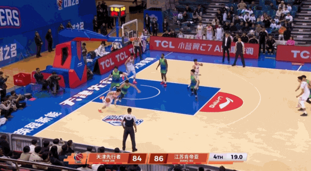 CBA常規(guī)賽第五輪,四連敗的天津男籃主場對陣四連敗的江蘇男籃,比賽還剩1分19秒,天津男籃一波9比0將比分追至82比82。