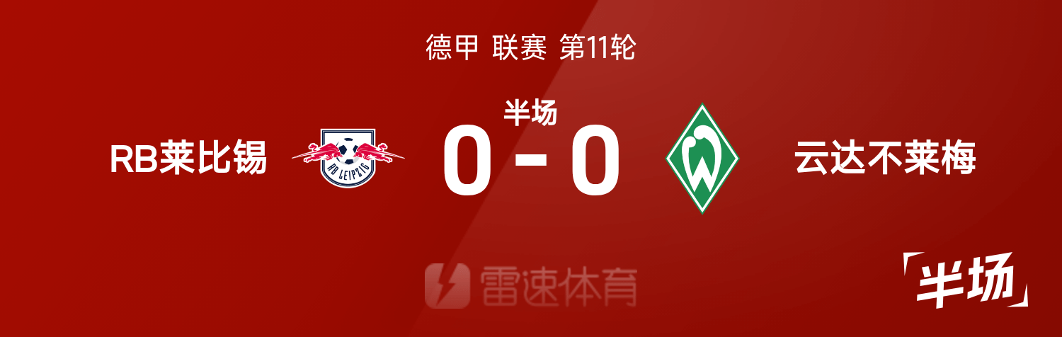 德甲半場(chǎng):場(chǎng)上僵局暫未打破,RB萊比錫0-0云達(dá)不萊梅