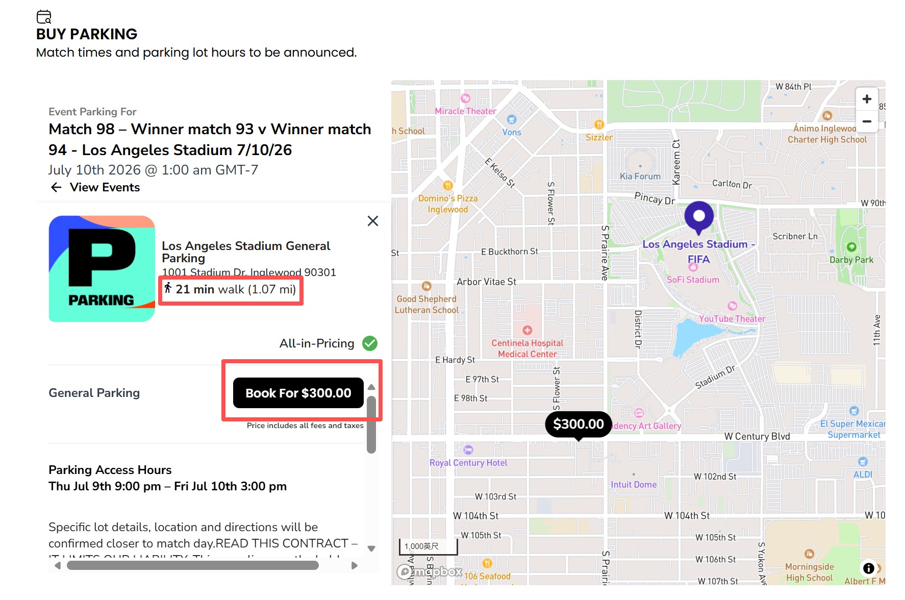看場球停車費要掏2,000塊?是的,你沒看錯。在由JustPrak運營的國際足聯(lián)2026世界杯官方停