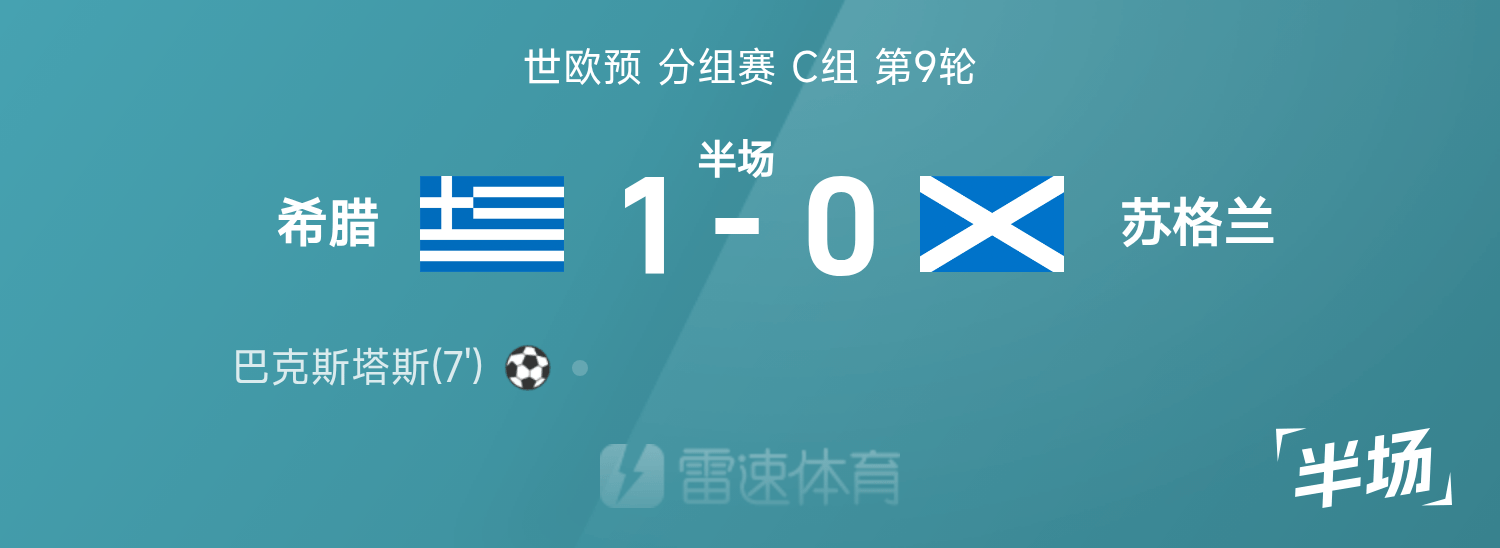 雷速體育11月16日訊 26賽季世歐預(yù)分組賽C組第9輪,希臘迎戰(zhàn)蘇格蘭。