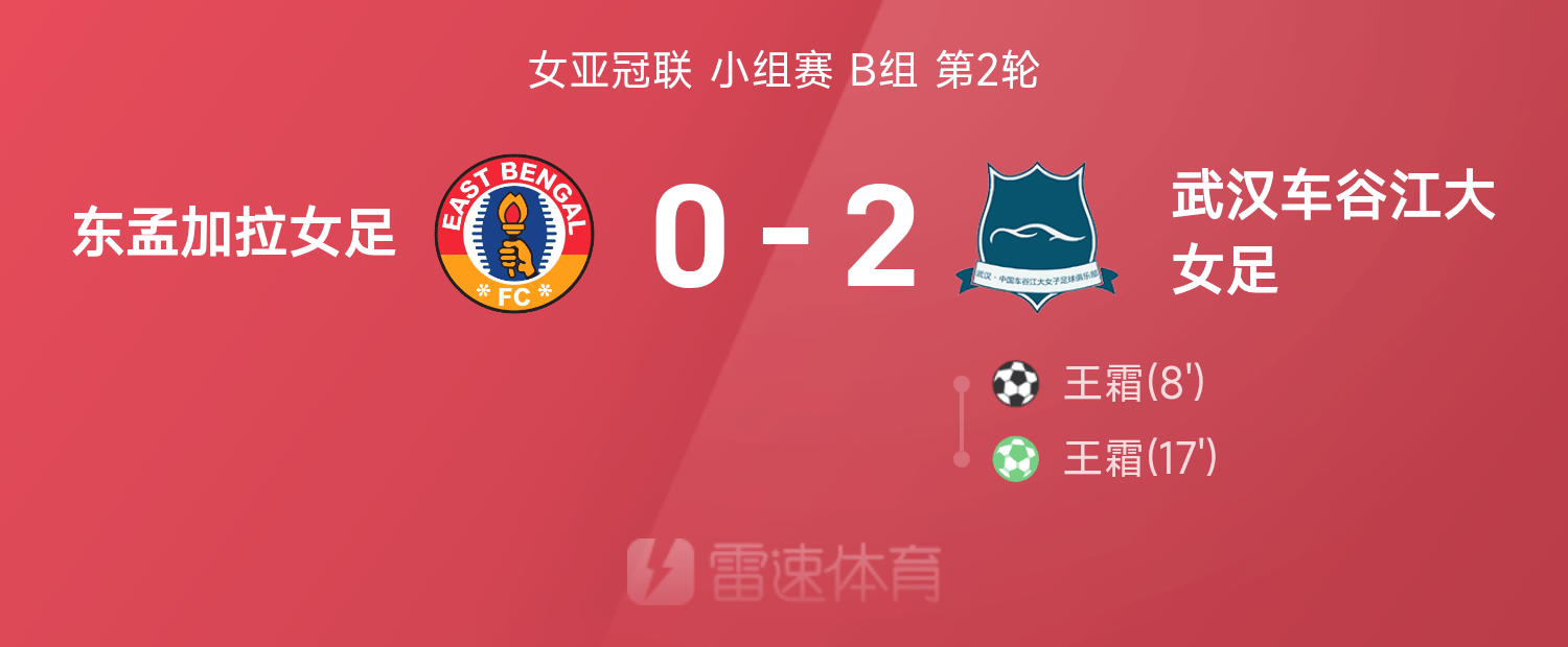 女亞冠聯(lián)戰(zhàn)報(bào):王霜雙響,武漢車谷江大2-0東孟加拉女足