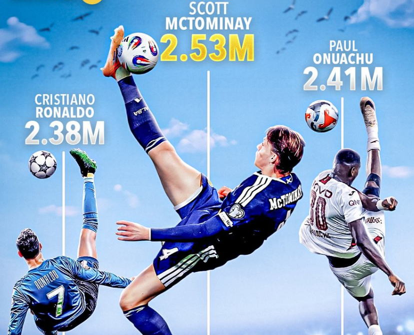 2.53米!麥克托米奈超C羅、奧納丘,創(chuàng)最高高度倒鉤進(jìn)球