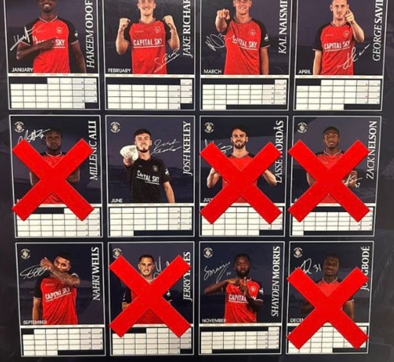 盧頓推出2026年球隊日歷,但上面印的12個球員5個都已不在陣中