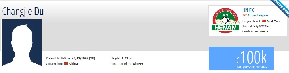 德轉(zhuǎn):杜長(zhǎng)杰自由身回歸河南隊(duì),上賽季效力于上海嘉定匯龍