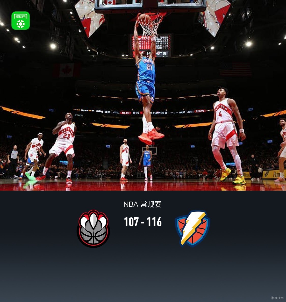 雷霆116-107客勝猛龍,卡森-華萊士27+8+6,以賽亞-喬22分