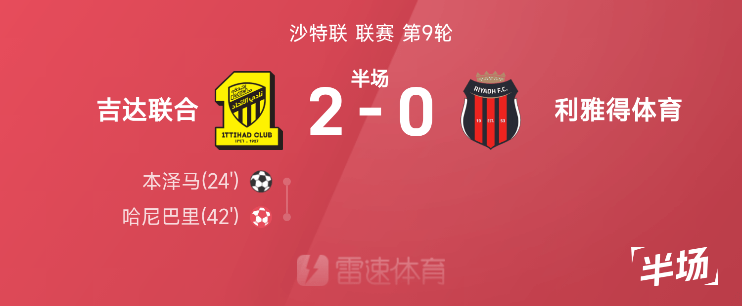 沙特聯(lián)半場(chǎng):本澤馬破門,吉達(dá)聯(lián)合暫2-0利雅得體育