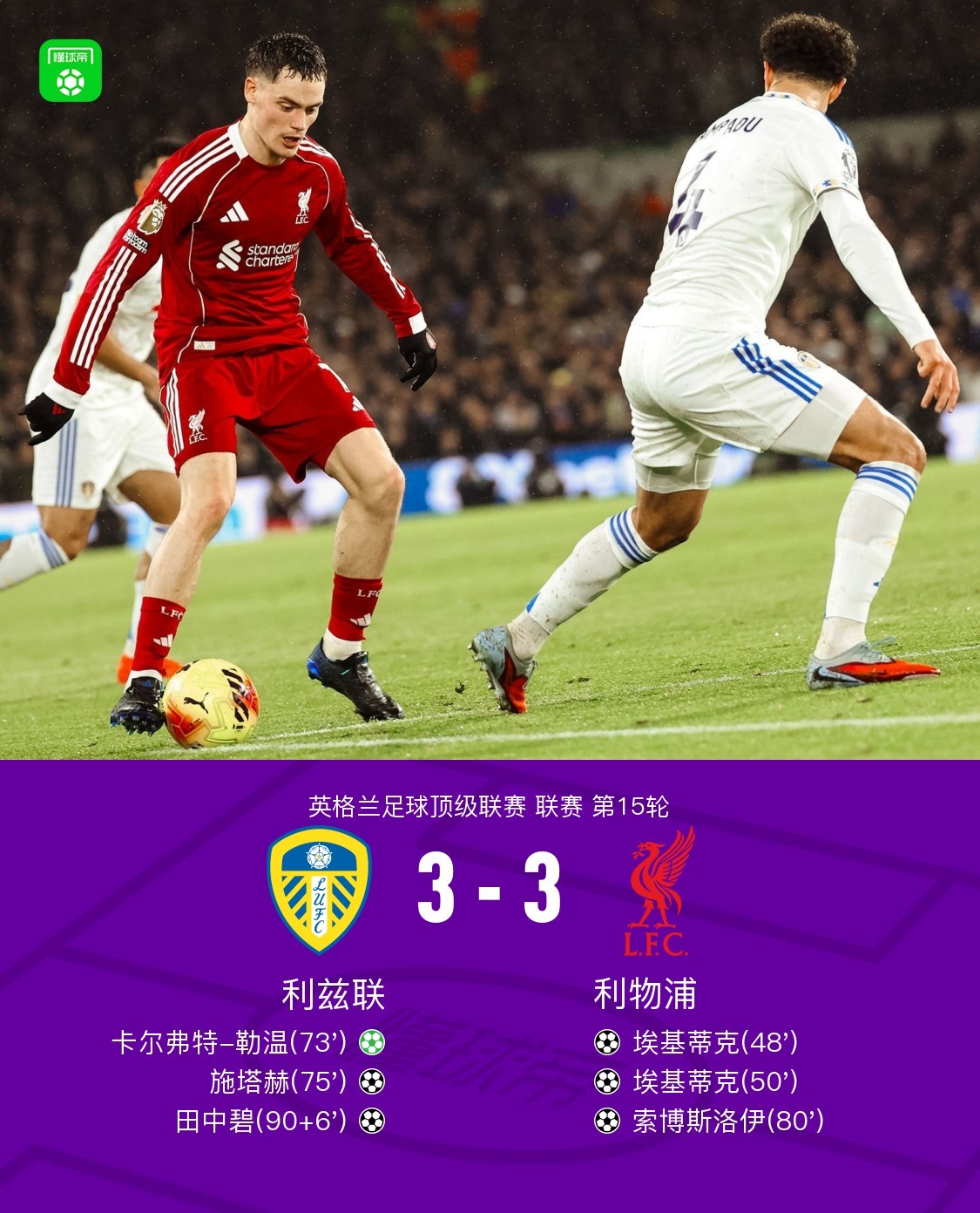 劍南春|利物浦客場3-3利茲聯(lián),田中碧補(bǔ)時(shí)絕平,埃基蒂克雙響