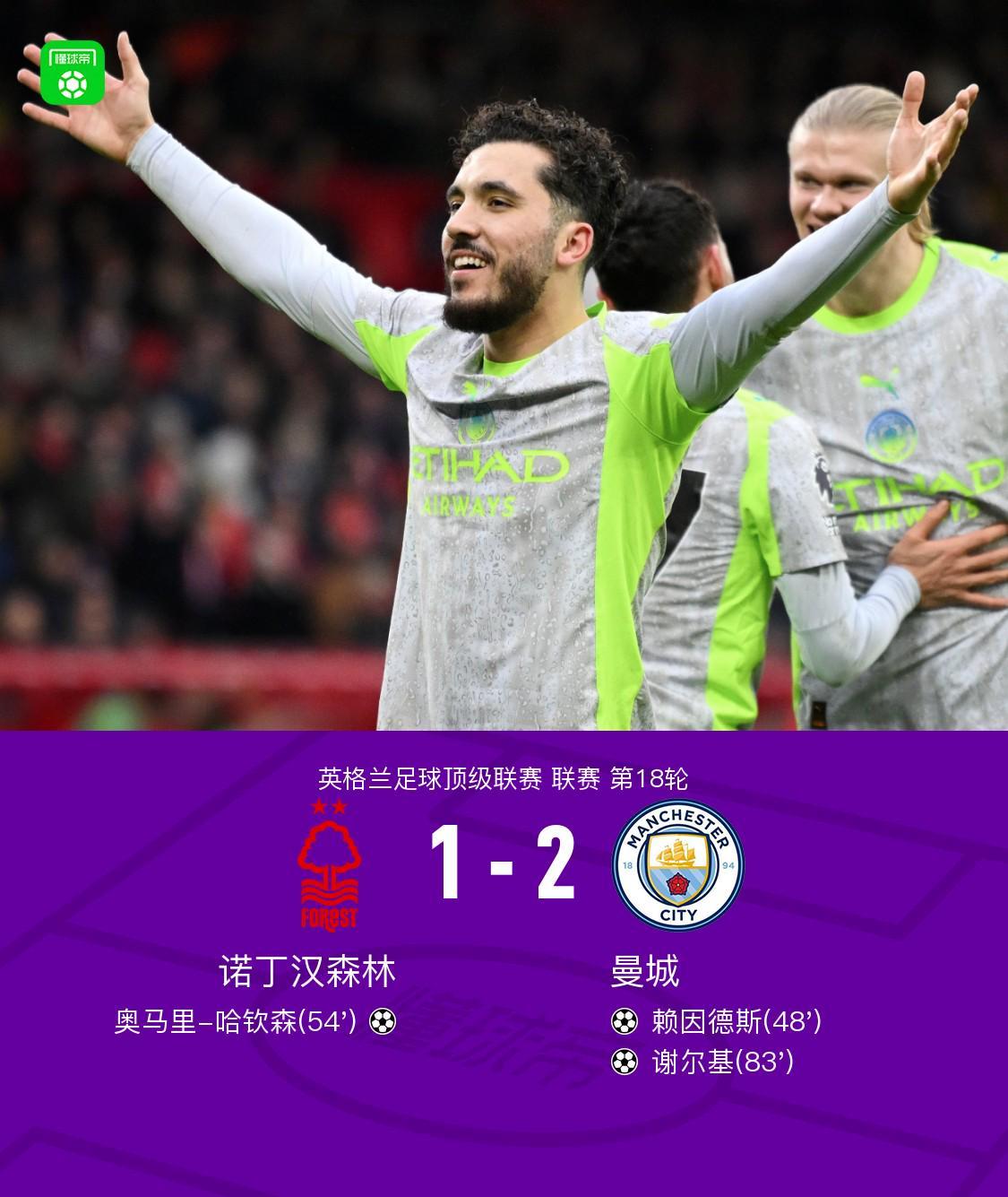 劍南春丨曼城客場2-1諾丁漢森林,謝爾基傳射,賴因德斯建功