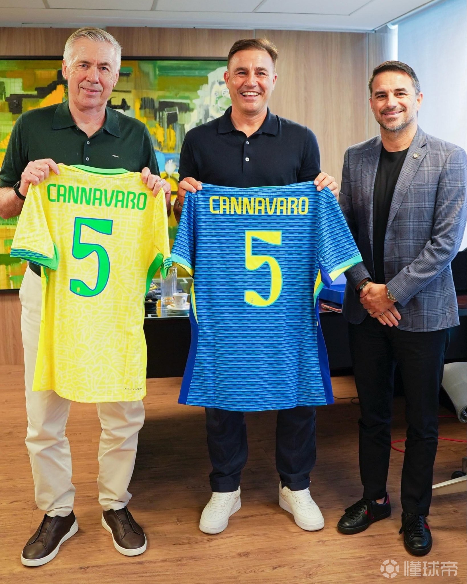 卡納瓦羅造訪巴西足協(xié)并與安切洛蒂合影,他正在巴西推廣香水