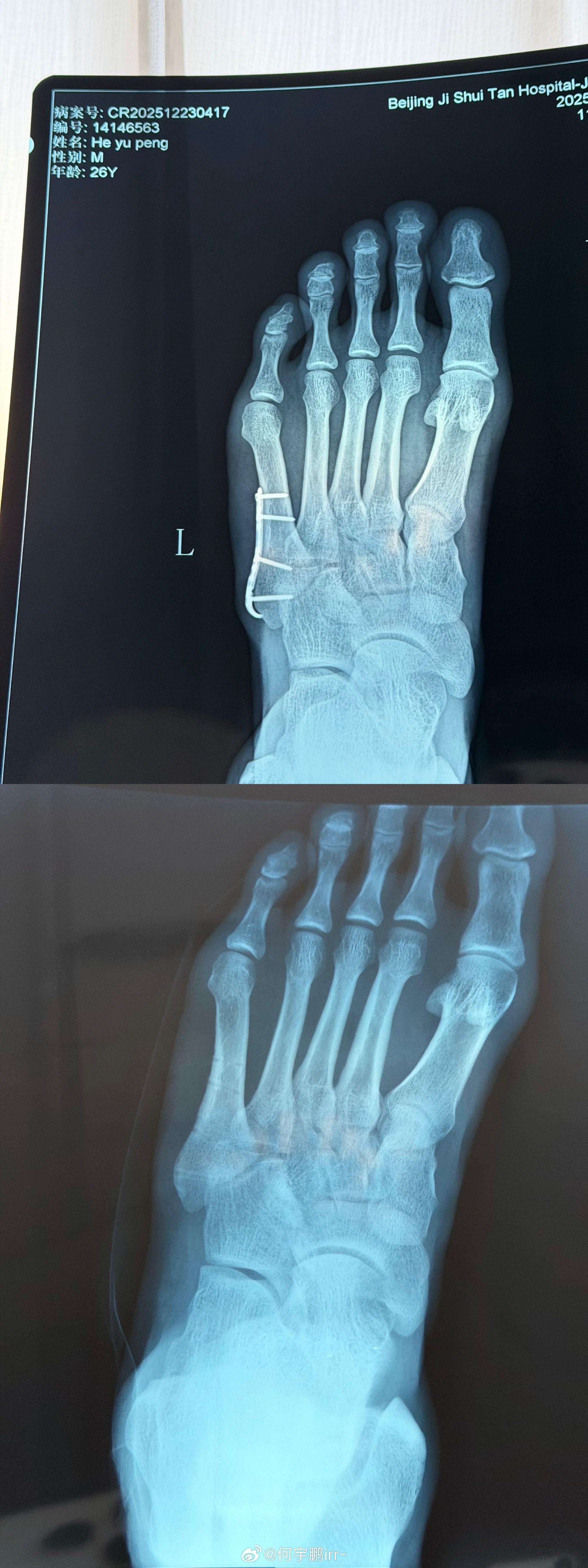 何宇鵬分享摘除左腳鋼板照:終于要和這個(gè)“鐵哥們”說(shuō)再見了
