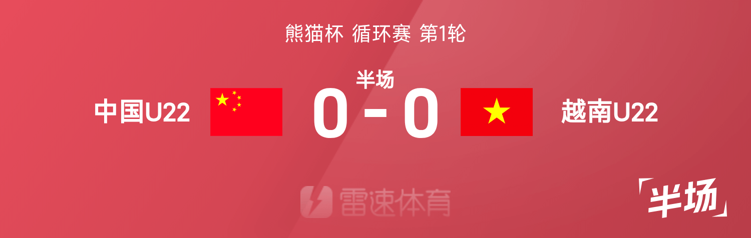 雷速體育11月12日訊 25賽季熊貓杯循環(huán)賽第1輪,中國(guó)U22迎戰(zhàn)越南U22。半場(chǎng)戰(zhàn)罷,雙方比分暫為中國(guó)U220-0越南U22。