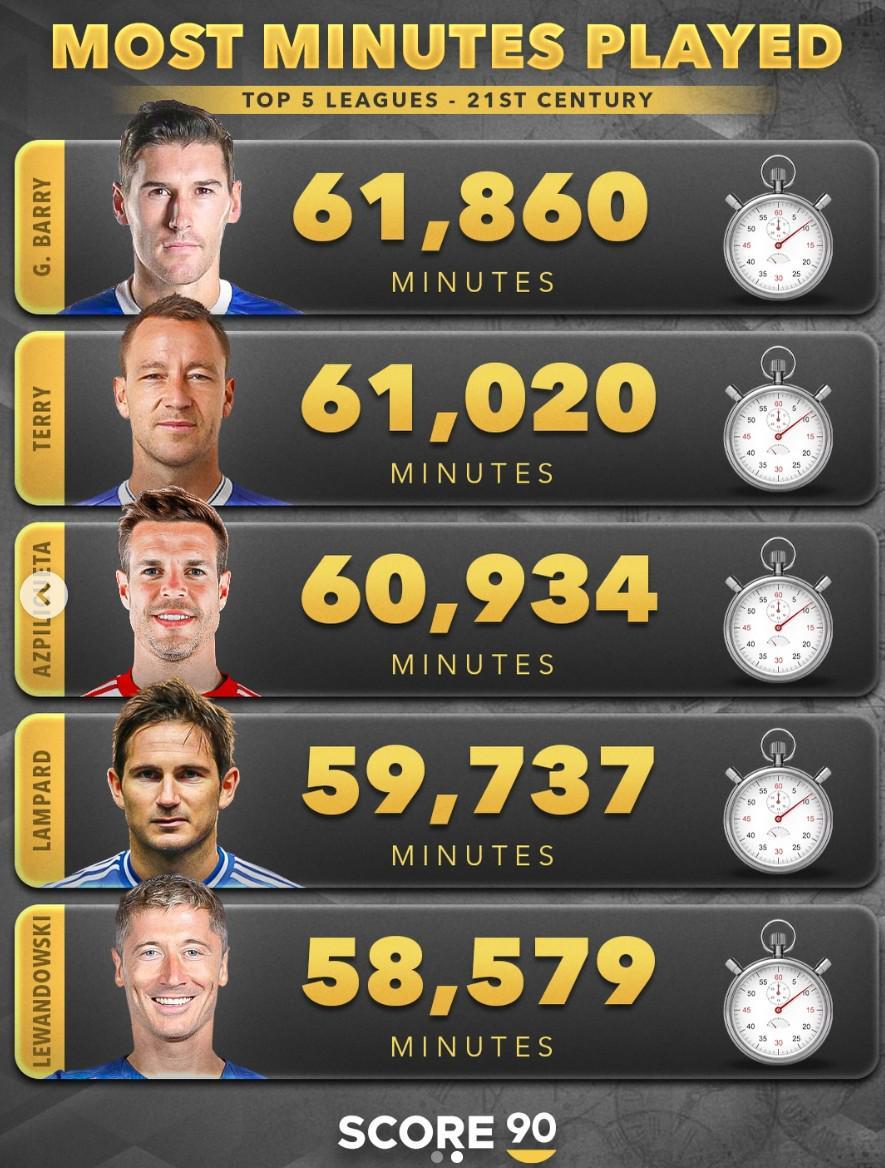 21世紀(jì)歐洲五大聯(lián)賽出場時間前十榜單