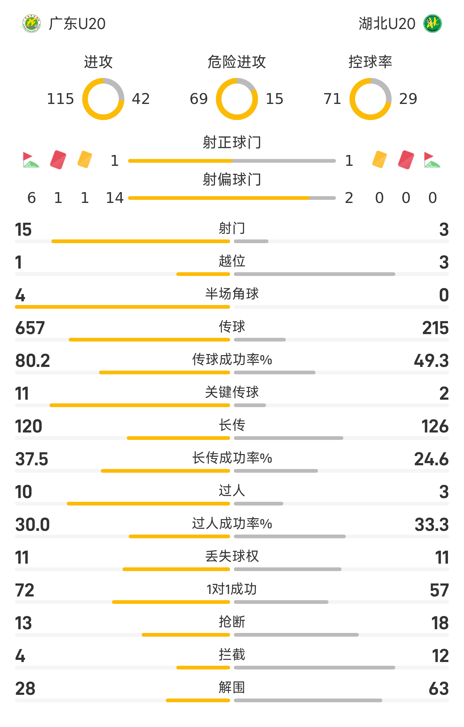 廣東U20首發(fā)陣容:22-袁建銳、4-李明杰(90’19-李星賢)、55-黃可祺、3-袁梓楠、5-海界清(90’20-黎樂航)、6-欒程(111’8-陳偉)、59-梅帥軍(90’15-陳子文)、16-張志雄、7-鐘文、57-王梓洋(87’33-姜文璟)、47-黃梓舜(80’60-安邦)