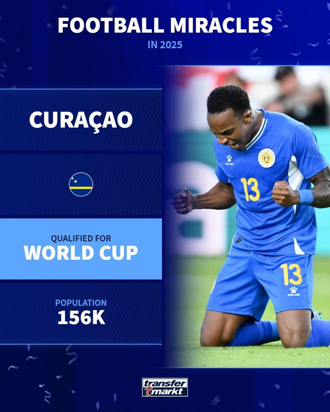 2、庫拉索晉級世界杯(人口僅15.6萬的庫拉索,在2026美加墨世界杯預選賽中脫穎而出,歷史性首次闖入世界杯決賽圈,成為世界杯史上人口最少的參賽地區(qū))