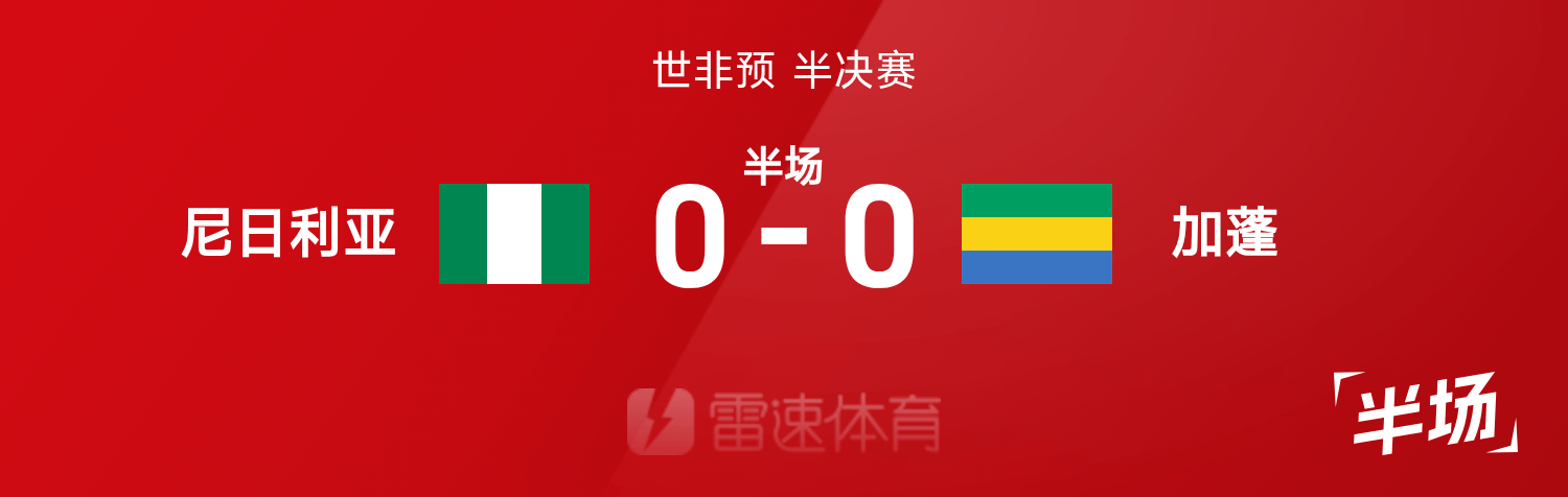 雷速體育11月14日訊 26賽季世非預(yù)半決賽,尼日利亞迎戰(zhàn)加蓬。上半場(chǎng)比賽,尼日利亞多次形成威脅,卻都被加蓬門(mén)將姆巴巴化解。半場(chǎng)戰(zhàn)罷,尼日利亞暫0-0加蓬。