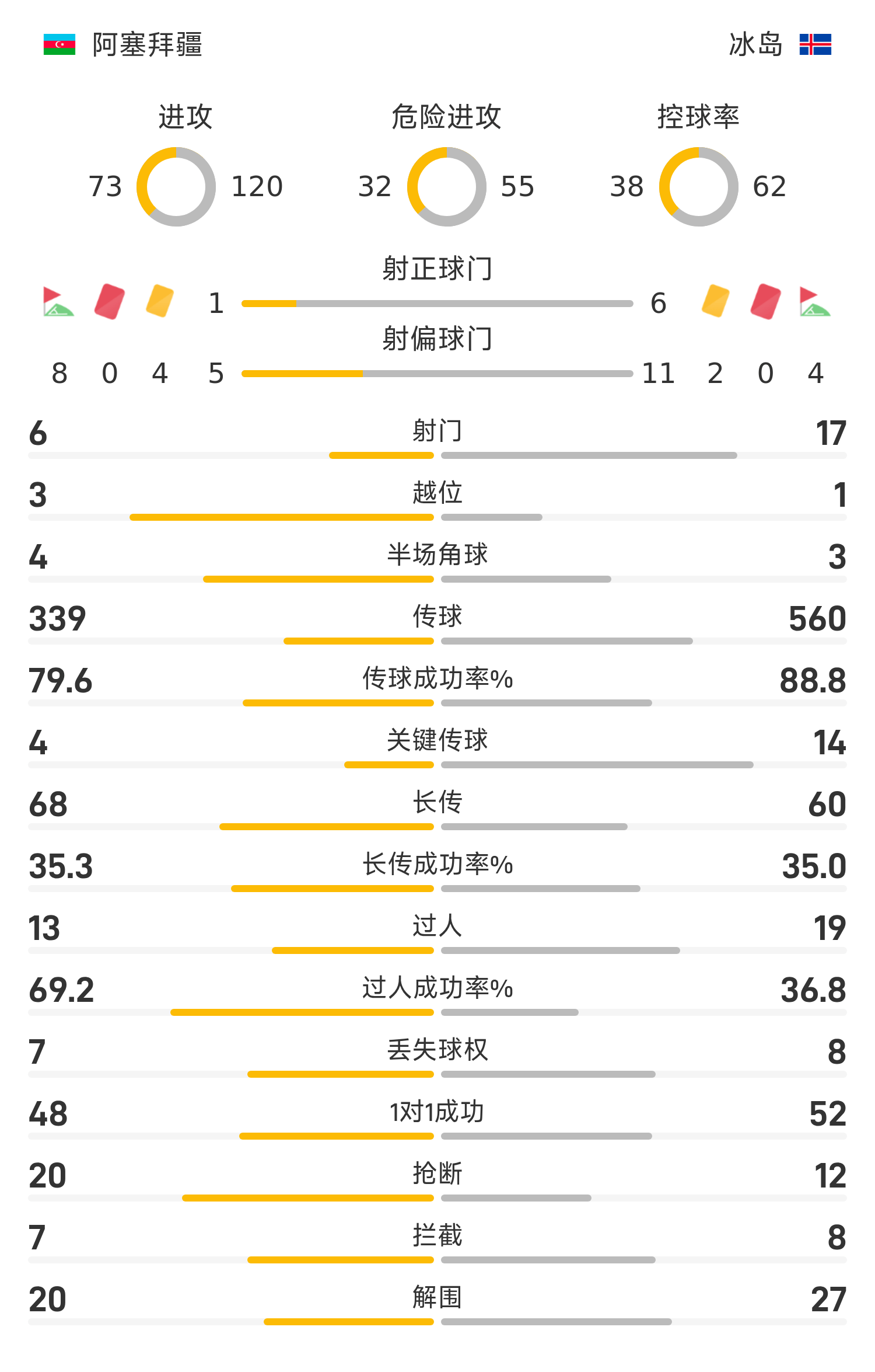 39’古德蒙德松長(zhǎng)傳助攻,因加松頭球破門,冰島2-0阿塞拜疆
