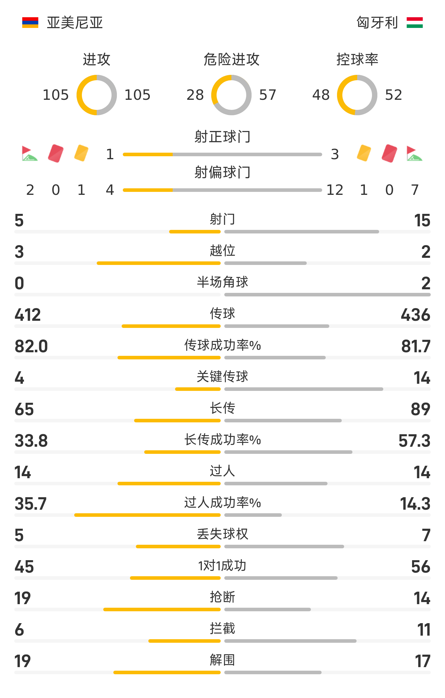 匈牙利首發(fā)陣容:1-迪布茨、7-內(nèi)戈、6-奧爾班、4-紹洛伊、11-凱爾凱茲(86’18-納格)、17-斯泰爾斯(71’8-維塔利斯)、10-索博斯洛伊、13-舍弗、20-薩萊(71’21-托斯)、19-瓦爾加、14-博拉(61’16-盧卡奇)