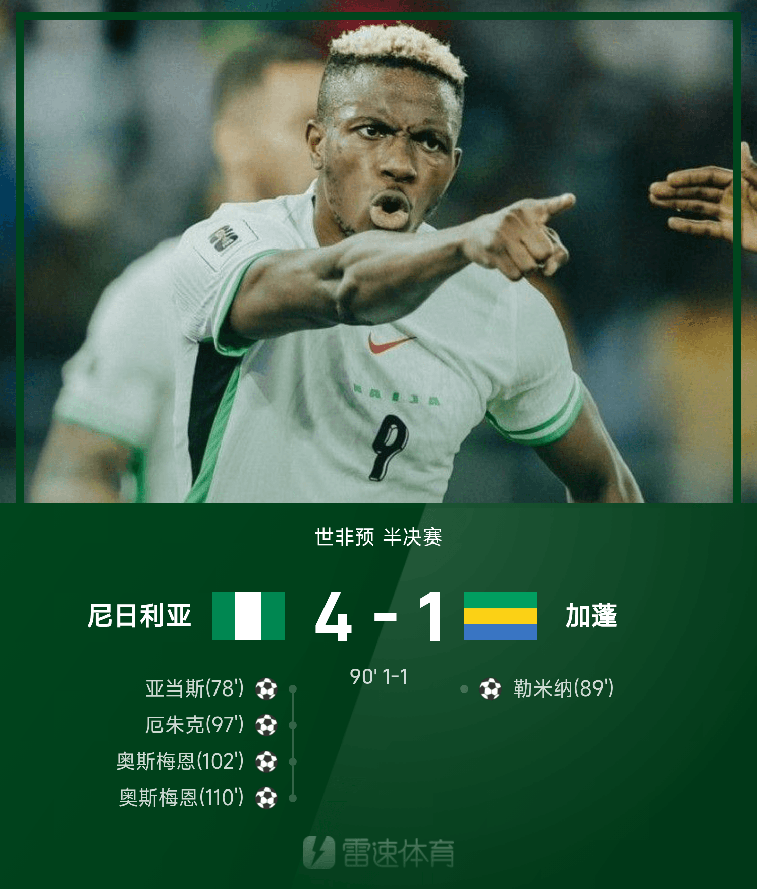 102’殺死比賽?奧斯梅恩終于破門,尼日利亞3-1加蓬