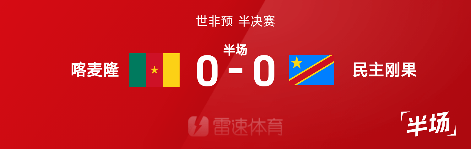 雷速體育11月14日訊 26賽季世非預(yù)半決賽,喀麥隆迎戰(zhàn)民主剛果。半場戰(zhàn)罷,雙方比分暫為喀麥隆0-0民主剛果,兩隊總計5射1正,機會寥寥。