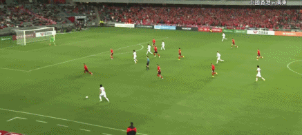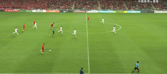 第61分鐘,姜至鵬后插上領(lǐng)球小角度抽射破門,廣東2-1反超!