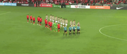 雙方球員步入球場,比賽即將打響