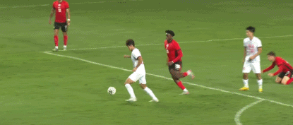 第25分鐘,姜至鵬傳中,時(shí)子豪包抄打門被撲