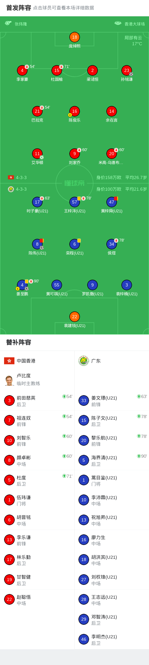第72分鐘,黃梓舜也吃到第二張黃牌被罰下,廣東九人作戰(zhàn)