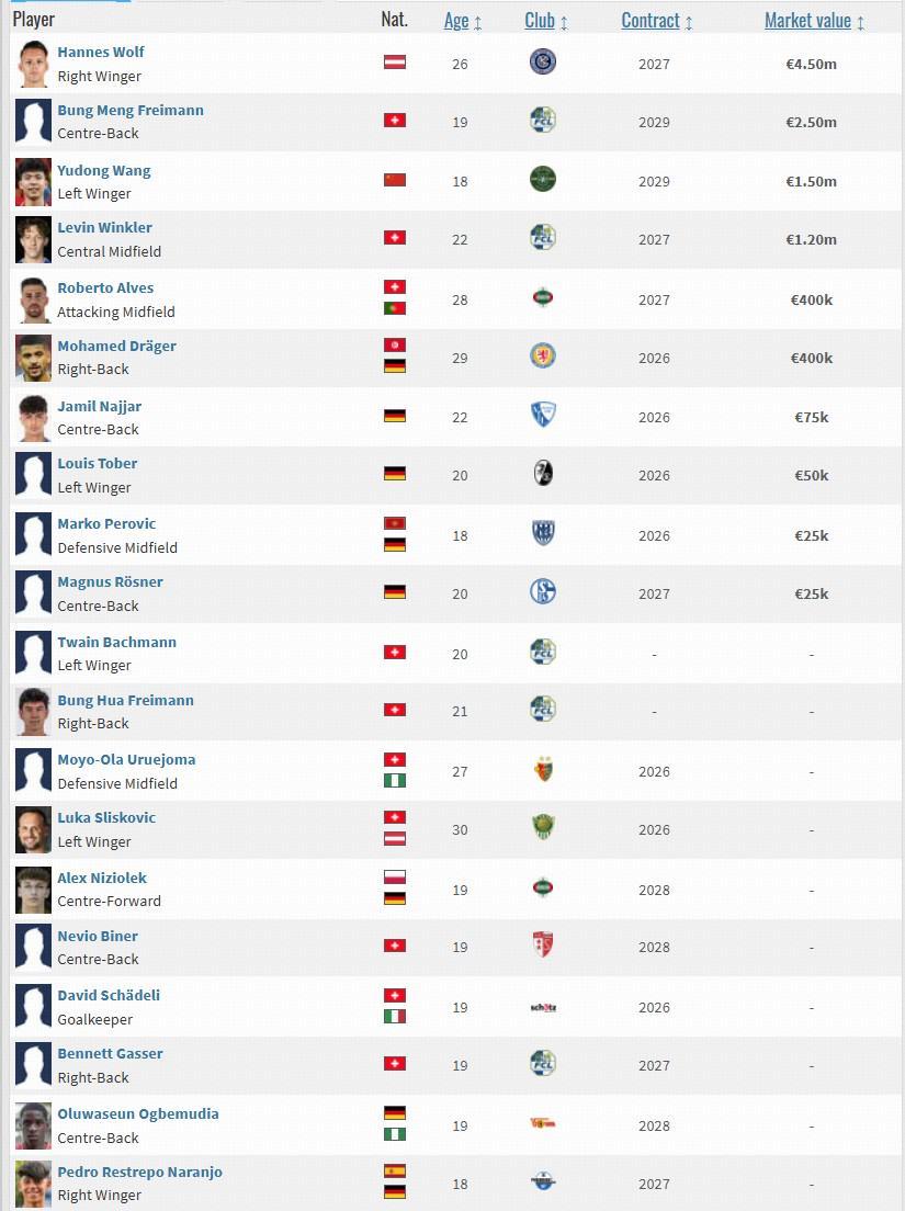 德轉(zhuǎn)市場(chǎng)網(wǎng)顯示,在ESM代理的球員中,身價(jià)最高的球員沃爾夫今年26歲,身價(jià)450萬(wàn)歐元,目前在紐約城踢球;18歲的瑞士小將邦格-弗萊曼身價(jià)第二高,目前效力于瑞士超球隊(duì)盧塞恩。王鈺棟簽約后,將成為ESM公司里德轉(zhuǎn)身價(jià)第三高的球員。目前ESM代理的球員主要效力于德國(guó)和瑞士聯(lián)賽。