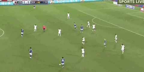 第5分鐘,日本前場(chǎng)搶斷,久保送出直塞南野拓實(shí)打門被門將沒(méi)收