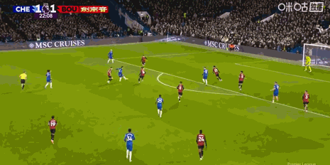 第23分鐘,加納喬助攻,恩佐勁射破門,切爾西2-1