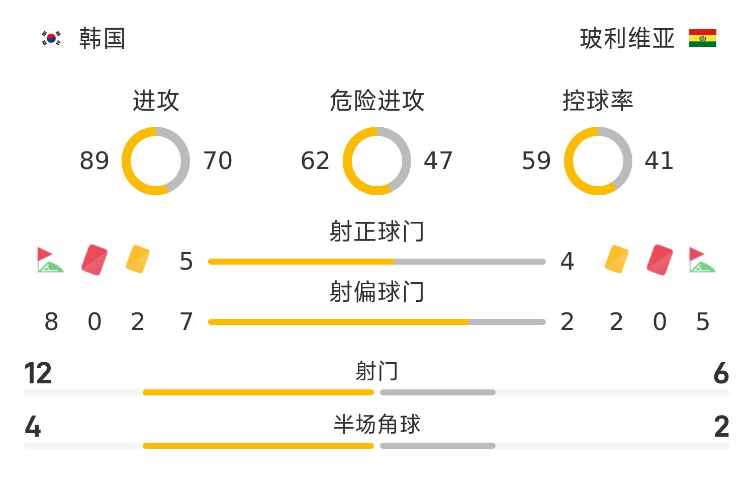 玻利維亞首發(fā)陣容:23-維斯卡拉、17-費爾南德斯(90’5-里切特)、3-梅迪納(90’4-馬薩加)、16-托雷茲、2-阿羅約、8-比利亞羅埃爾(72’19-洛佩茲)、15-維拉米爾(80’0-None)、6-奎拉爾、7-米格利托、11-納瓦(80’18-羅查)、9-蒙特羅(90’21-馬丁內(nèi)斯)