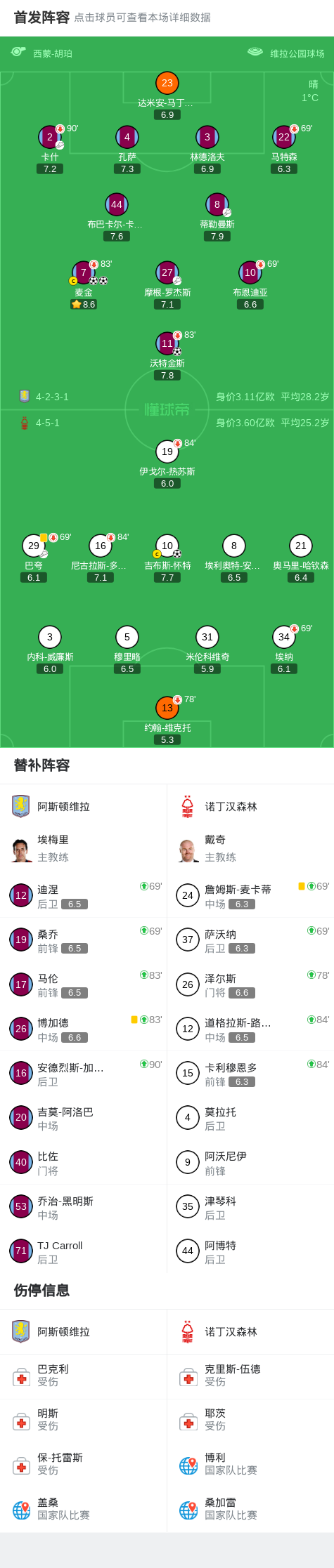 第61分鐘,巴夸直塞,吉布斯-懷特單刀破門,諾丁漢森林1-2維拉