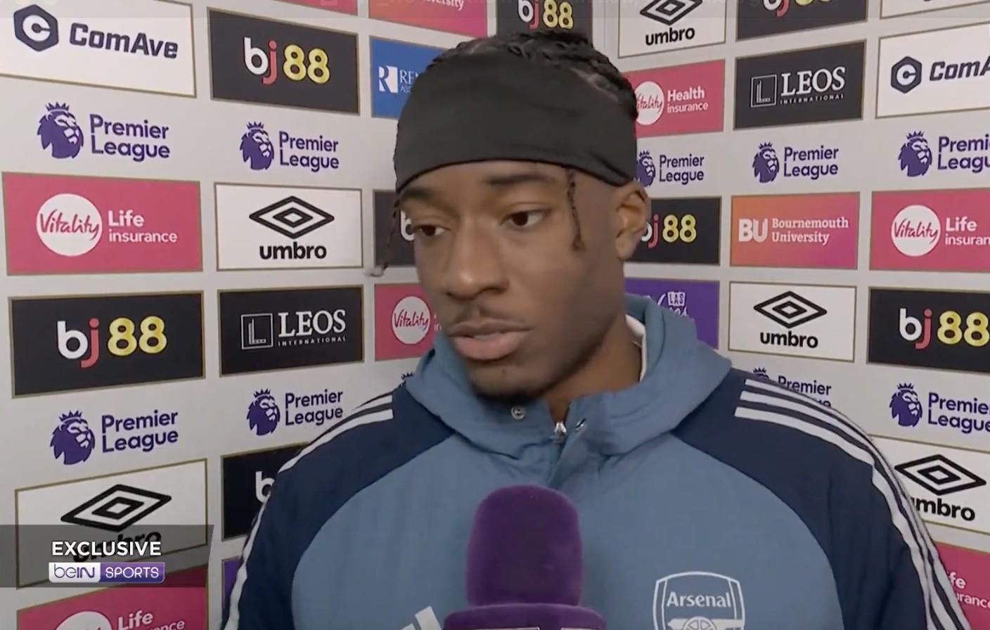 英超第20輪,阿森納客場(chǎng)3-2擊敗伯恩茅斯,賽后,阿森納邊鋒馬杜埃凱接受了拜因體育的采訪。