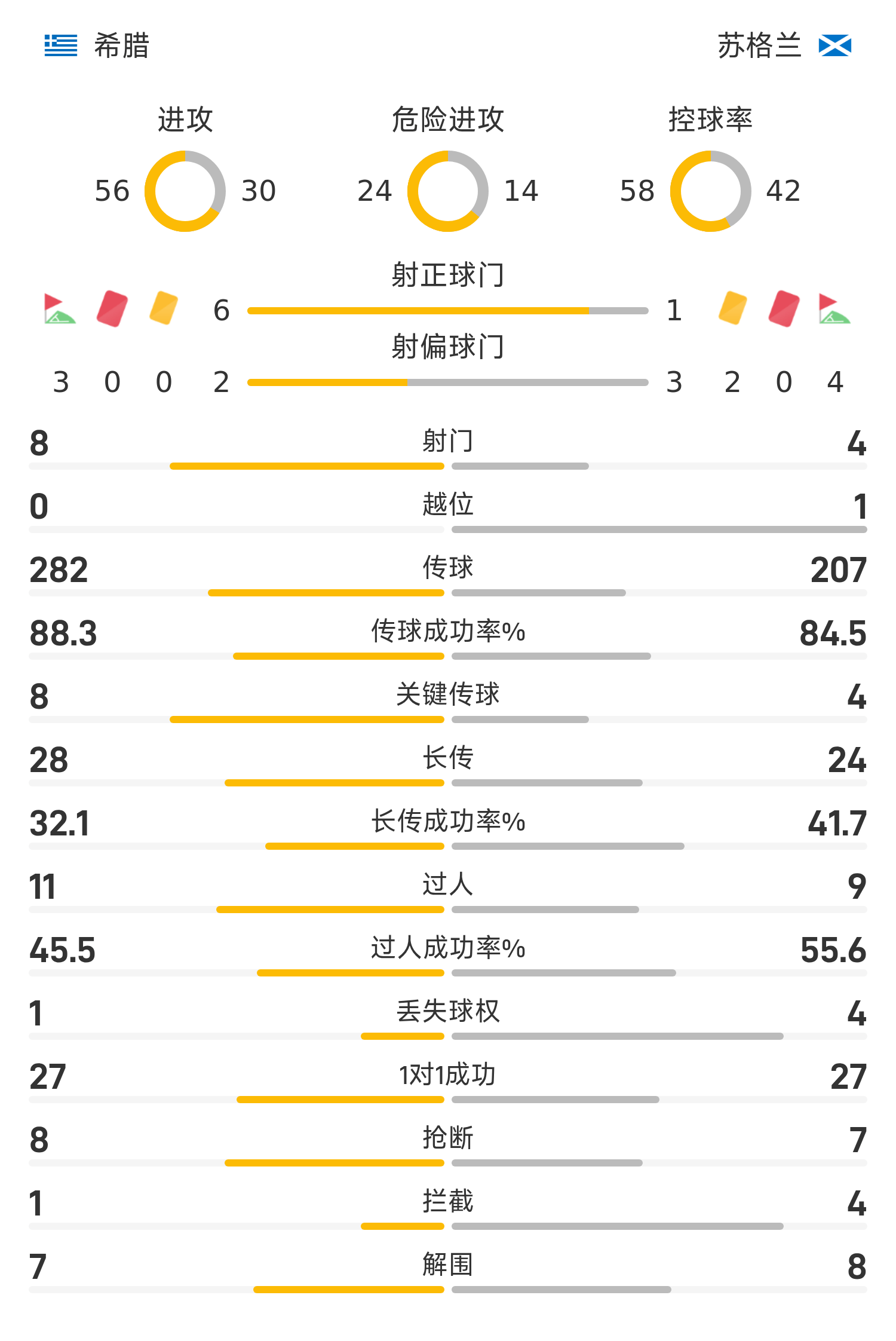 27’希臘前場角球開出,雷索斯甩頭攻門遭戈登神撲