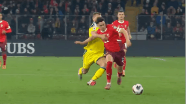 90+4’曼贊比殺入禁區(qū)推射破門(mén),瑞士4-1瑞典