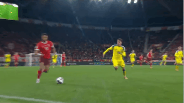 45’伯恩哈德森帶球殺入禁區(qū),隨后射門(mén)被門(mén)將奮力撲救