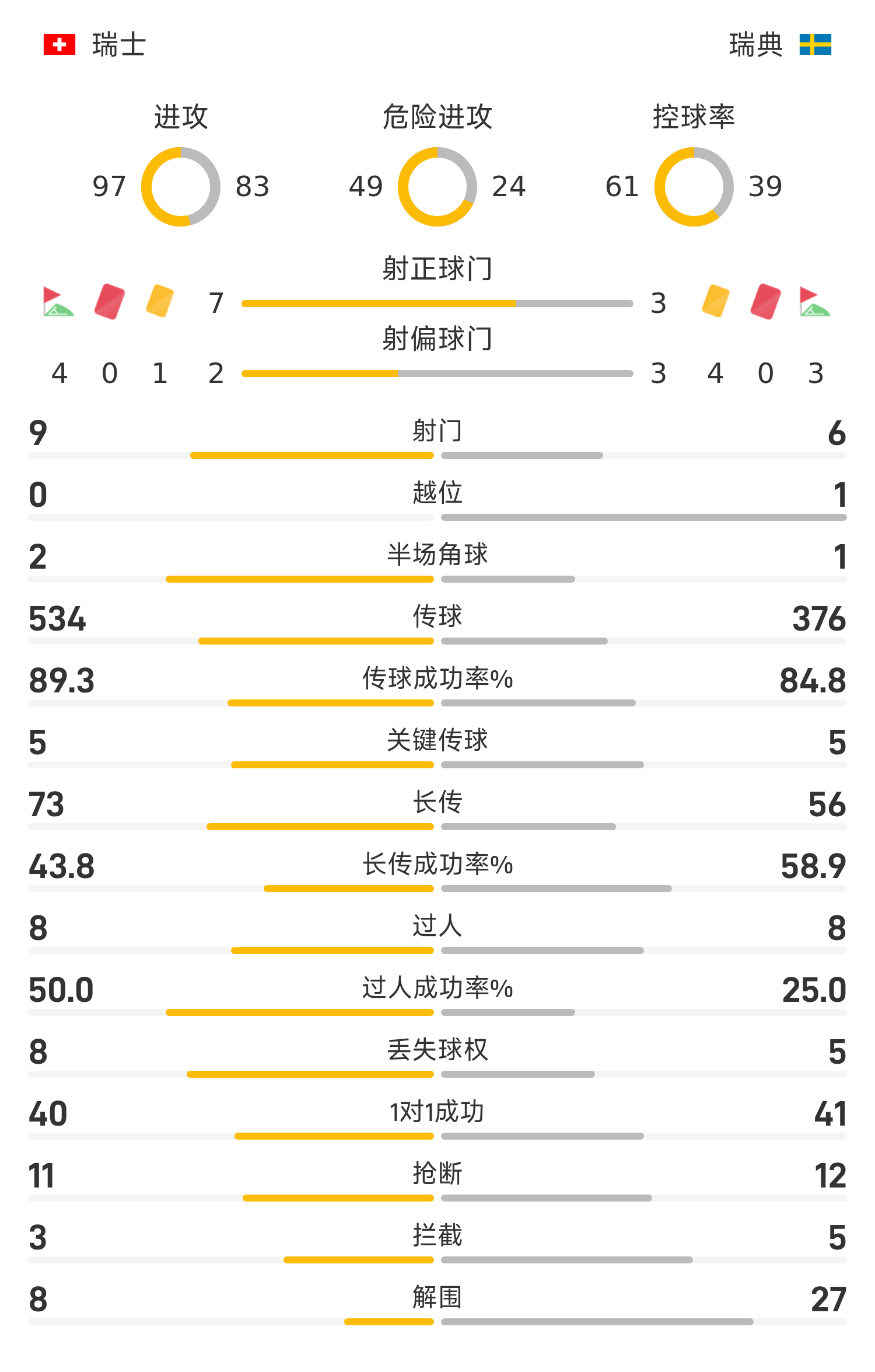 75’恩多耶大力抽射破門(mén)完成傳射,瑞士擴(kuò)大優(yōu)勢(shì)3-1瑞典