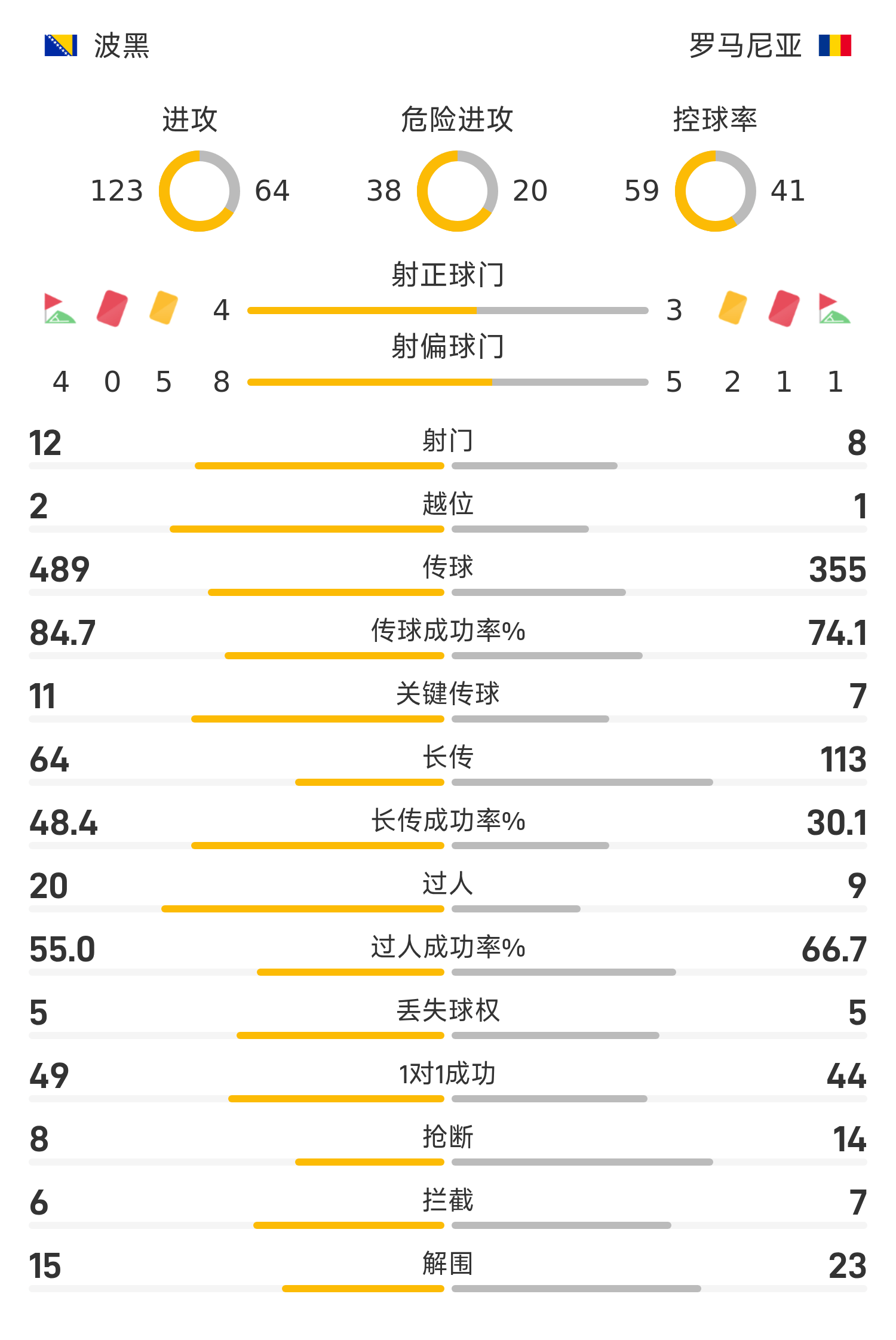 波黑首發(fā)陣容:1-瓦西爾吉、18-卡蒂奇、7-德迪奇、4-穆哈雷莫維奇、23-馬利克(46’21-阿拉杰貝戈維奇)、17-布魯諾(70’13-巴希奇)、15-梅米奇、6-塔希羅維奇(83’16-哈德齊亞梅托維奇)、9-巴茲達(46’10-塔巴科維奇)、20-巴伊拉塔雷維奇、11-哲科(90’8-吉戈維奇)