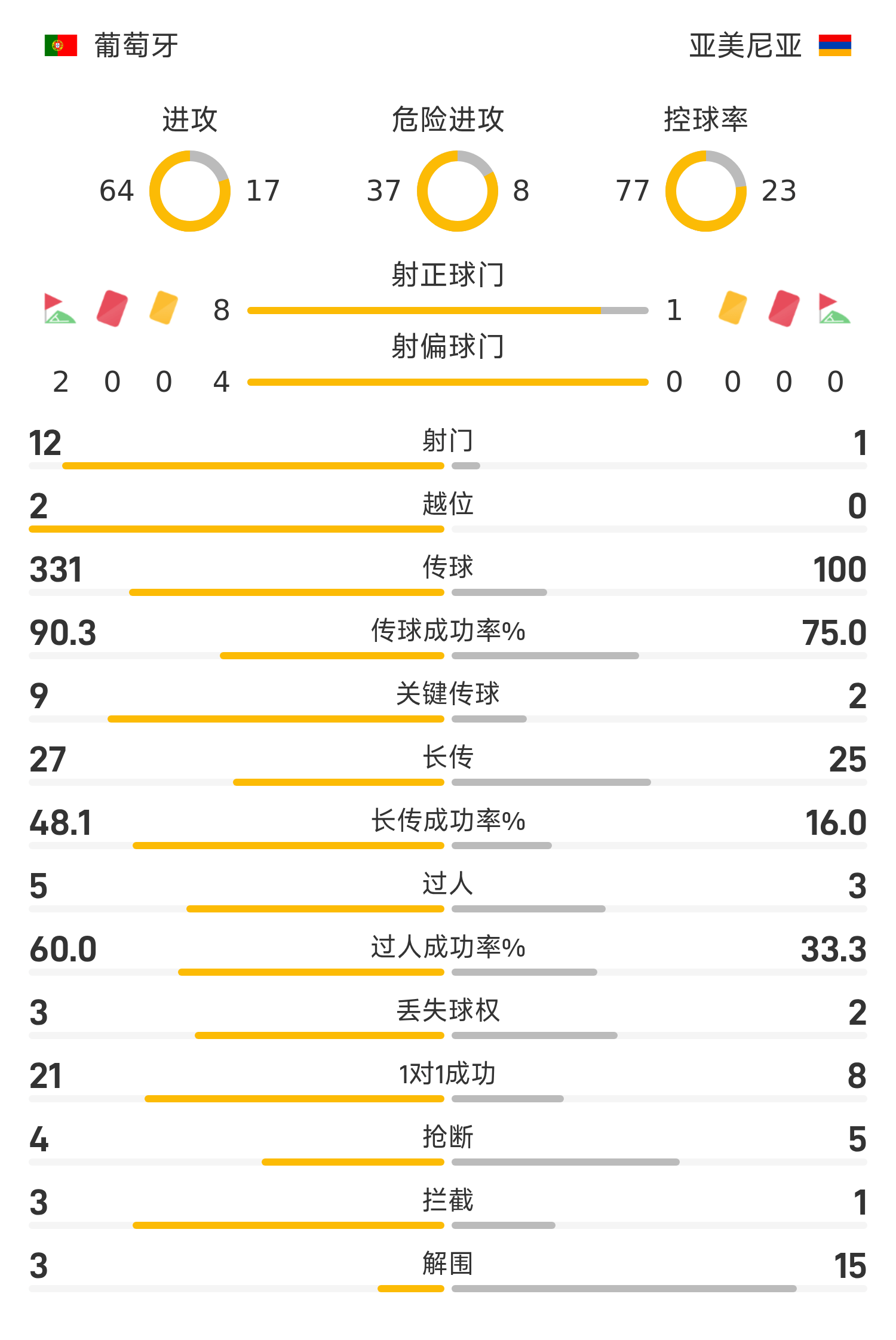 30’內(nèi)維斯遠(yuǎn)射貼地?cái)仄崎T,葡萄牙迅速擴(kuò)大優(yōu)勢3-1亞美尼亞